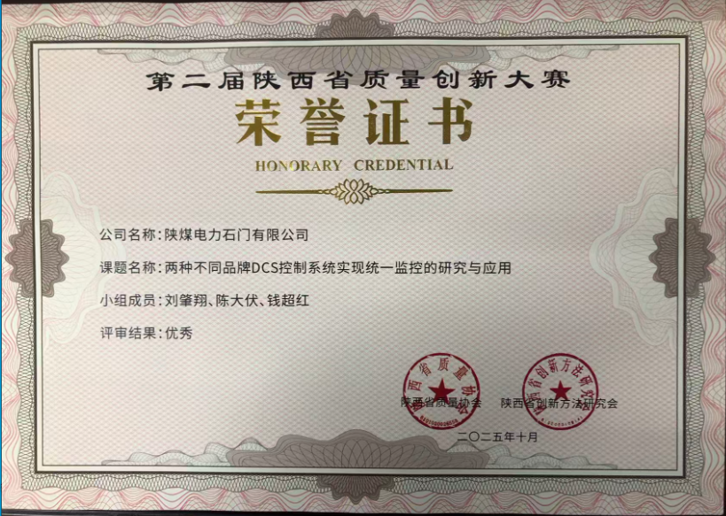 近日,在第二屆陜西省質(zhì)量創(chuàng)新大賽中,陜煤電力石門有限公司申報(bào)《兩種不同品牌DCS控制系統(tǒng)實(shí)現(xiàn)統(tǒng)一監(jiān)控的研究與應(yīng)用》榮獲優(yōu)秀獎(jiǎng)。《...